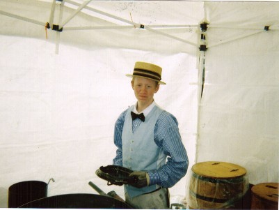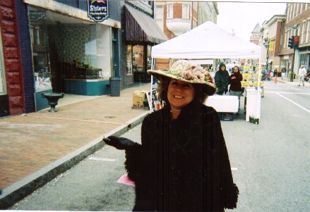 We really got into the spirit of things, dressing in Victorian dress. At the bottom of the page you'll see Eric in his vest and tie. Mom and Dad made a cute couple, if we do say so ourselves. And we've included a picture of a lady that stopped by wearing the prettiest hat.